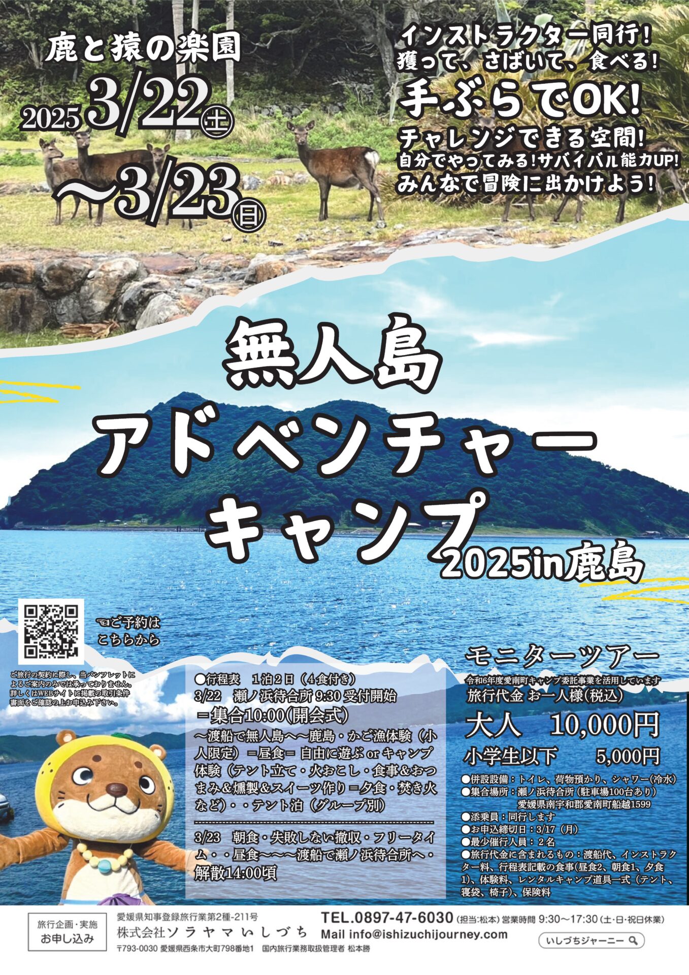 ※渡船代、インストラクター経費、体験料、食事料、レンタルキャンプ道具、保険料など、全て込み!