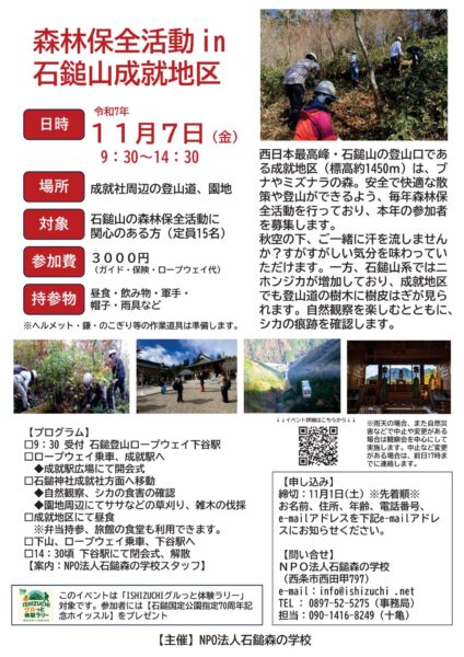 対象:石鎚山の森林保全活動に関心のある方(定員15名)