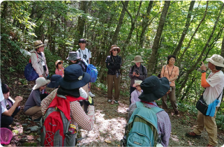ホンジカが増加しており、成就地区でも登山道の樹木に樹皮はぎが見られます。自然観察を楽しむとともに、シカの痕跡を確認します。